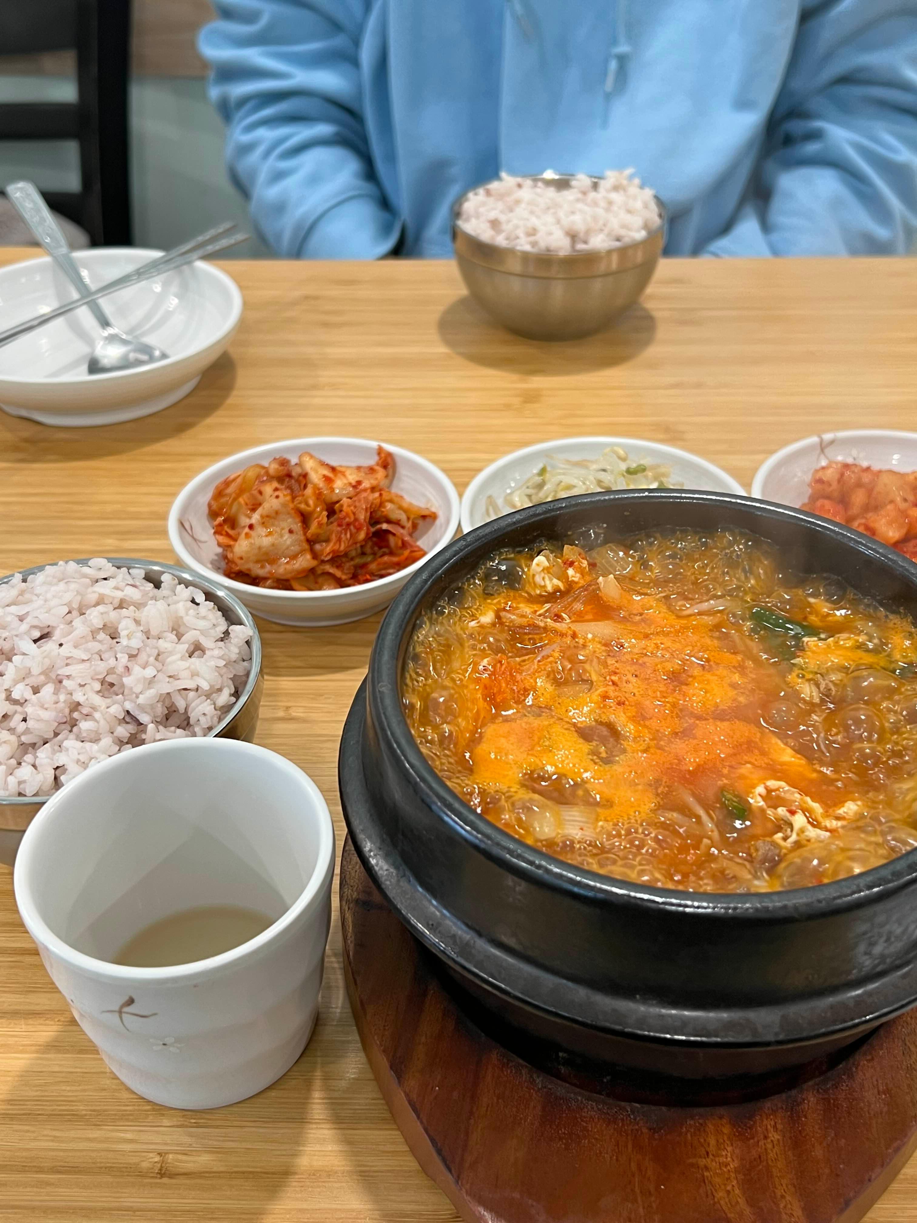 식사메뉴는 물론이고 감자탕, 곱창전골, 잡채, 냉면 등 한국식 분식집에 있을 법한 다양한 델리메뉴들도 많고 찌개메뉴도 있어서 좋았다. 나는 뜨끈한 찌개가 먹고 싶어서 육개장을 시켰는데 밥 양도 많고 반찬도 나쁘지 않았다. (자세히 보기)