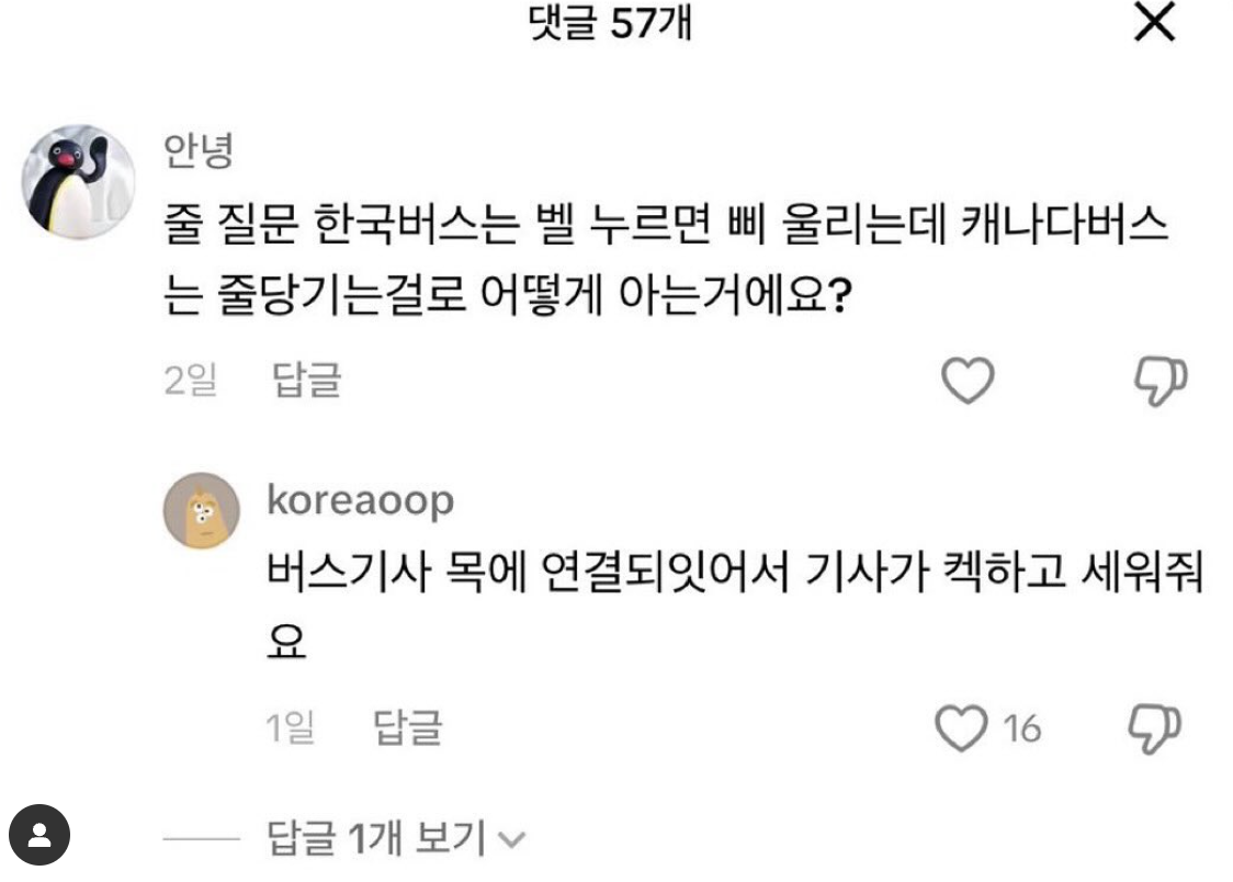 유명한 이 짤처럼.. 노란줄을 당기면되는 켁나다버스