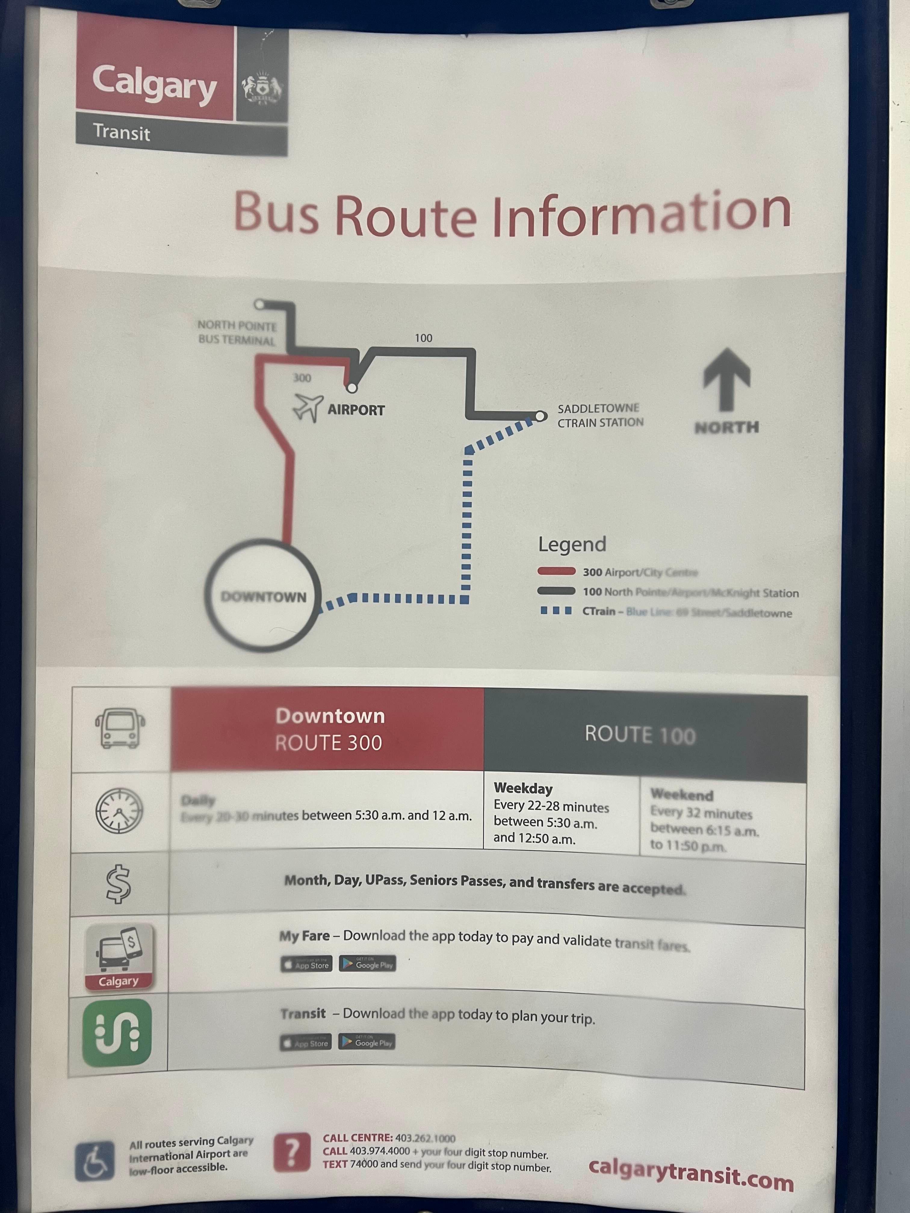 캘거리공항에서 시내로 가는 방법을 먼저 공유해보려 한다. 당연히 우버를 타는 방법도 있지만 나는 가장 저렴한 '대중교통'을 이용하는 방법을 택했다. 그리고 다른 선택지도 소개해보자면, 비행기 시간과 인원에 따라 다르겠지만 가족여행이거나 친구들과 함께하는 여행일 경우에는 공항픽업서비스를 이용하거나(3인 기준) 밴프로 바로 이동하는 투어를 예약하는 것도 좋은 방법이다. 나는 혼자 여행이고 숙소까지 이미 캘거리에 예약해두었기 때문에 위 방법을 선택하지 않았지만 꽤나 괜찮은 옵션일 것!