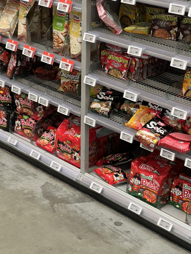 물론 조리도구가 호텔에 구비되어있지는 않지만 🍜 불닭볶음면의 다양한 맛을 구경할 수 있었던 점도 재미있었다! 호텔에서 주는 물이 부족해서 물을 더 사갔었는데 에비앙 큰 사이즈도 1.29€ 정도로 저렴했다. 암스테르담도 전반적으로 런던처럼 중-대형 마트가 도시 곳곳에 편의점만큼이나 많아서 편리하게 이용할 수 있었다.