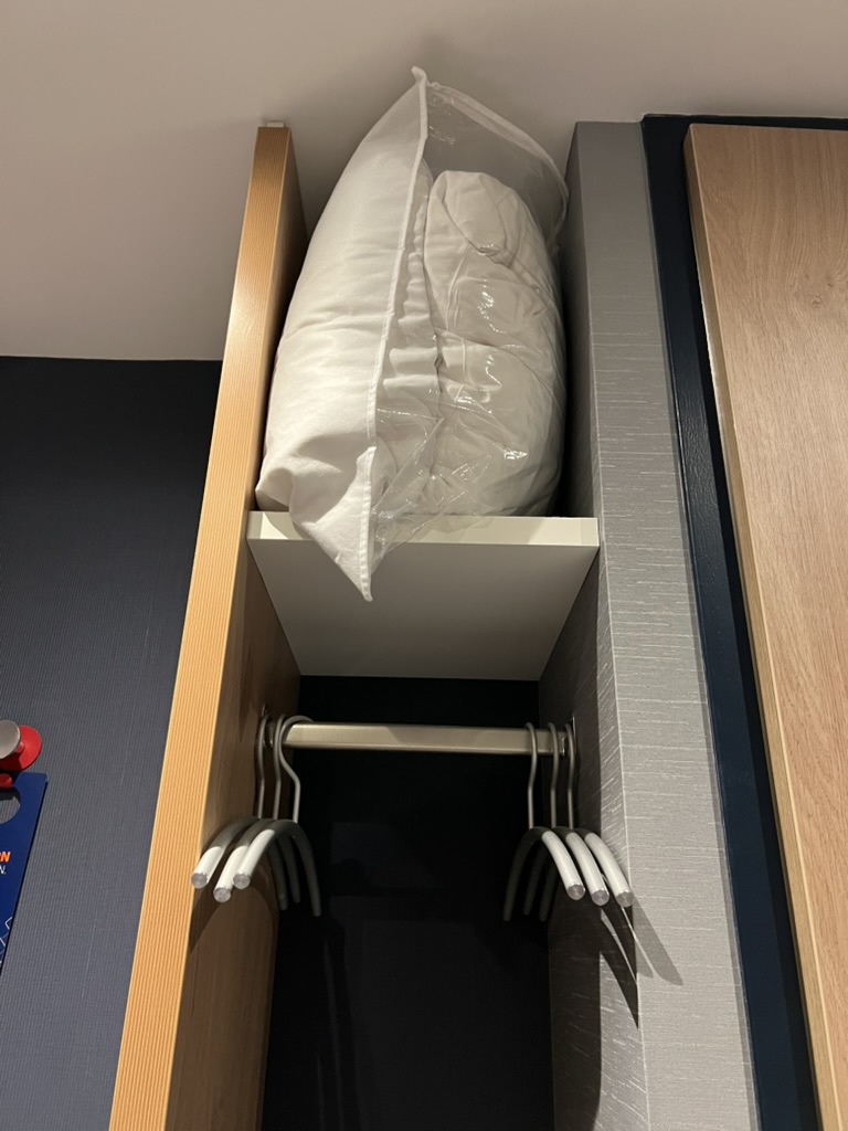 그 옆에는 옷걸이와 여분 침구들이 있었는데 옷걸이가 튼튼해서 간단한 빨래를 걸어두기에도 편했다.