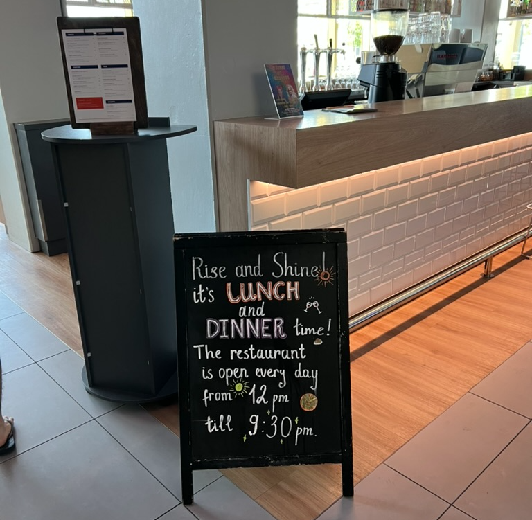 로비 공간에는 쉴 수 있는 곳도 아주 넉넉하고 여행 관련 자료도 많이 놓여있지만 조식 먹는 곳도 정말 넓다! 점심, 저녁 식사도 할 수 있고 바도 있어서 이용객이 많았다. (12:00~21:30)
