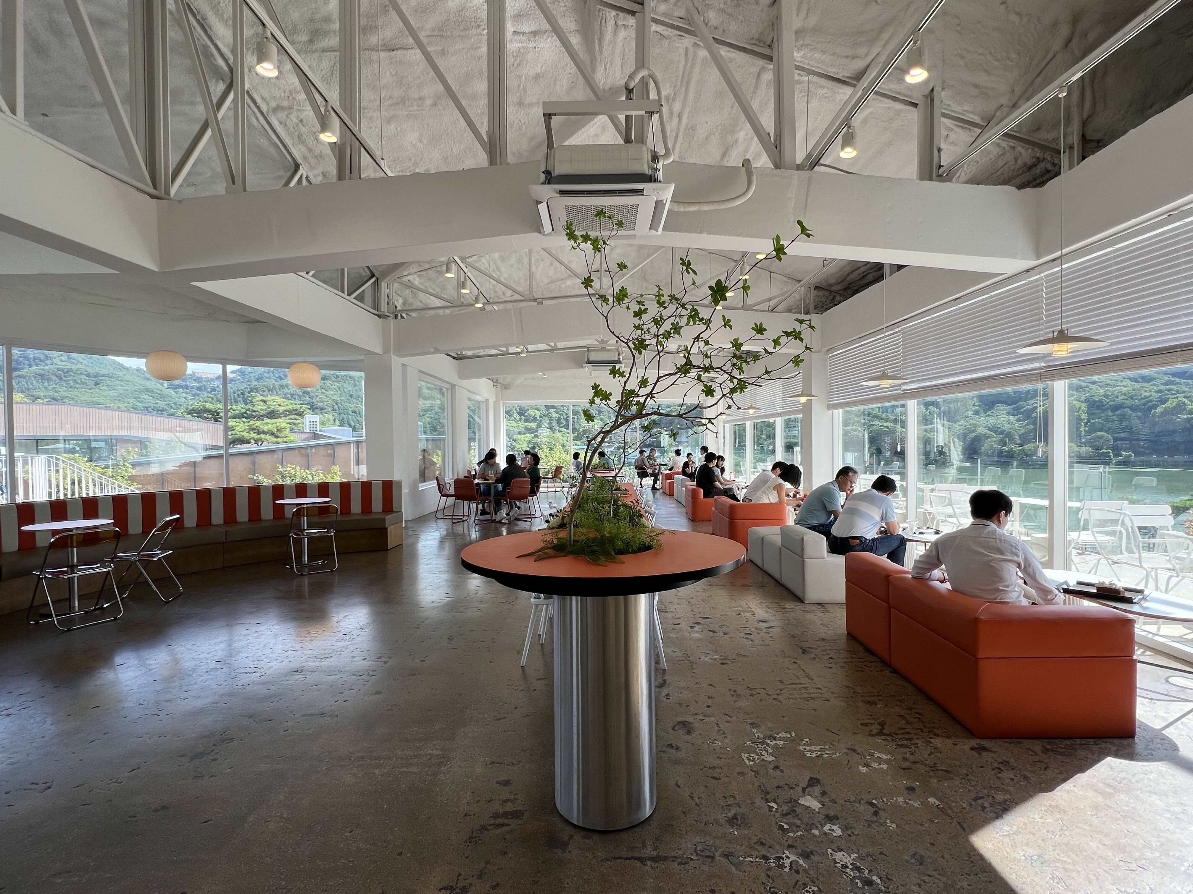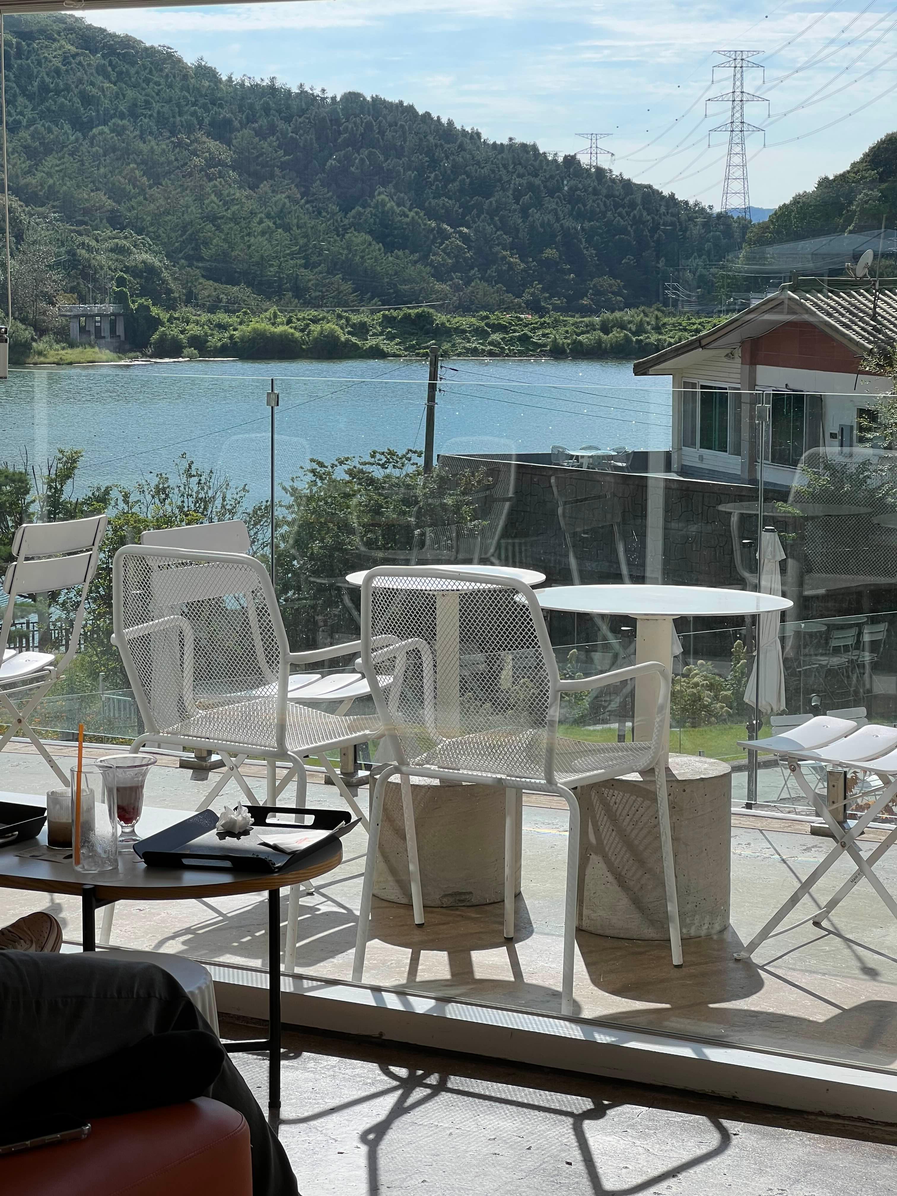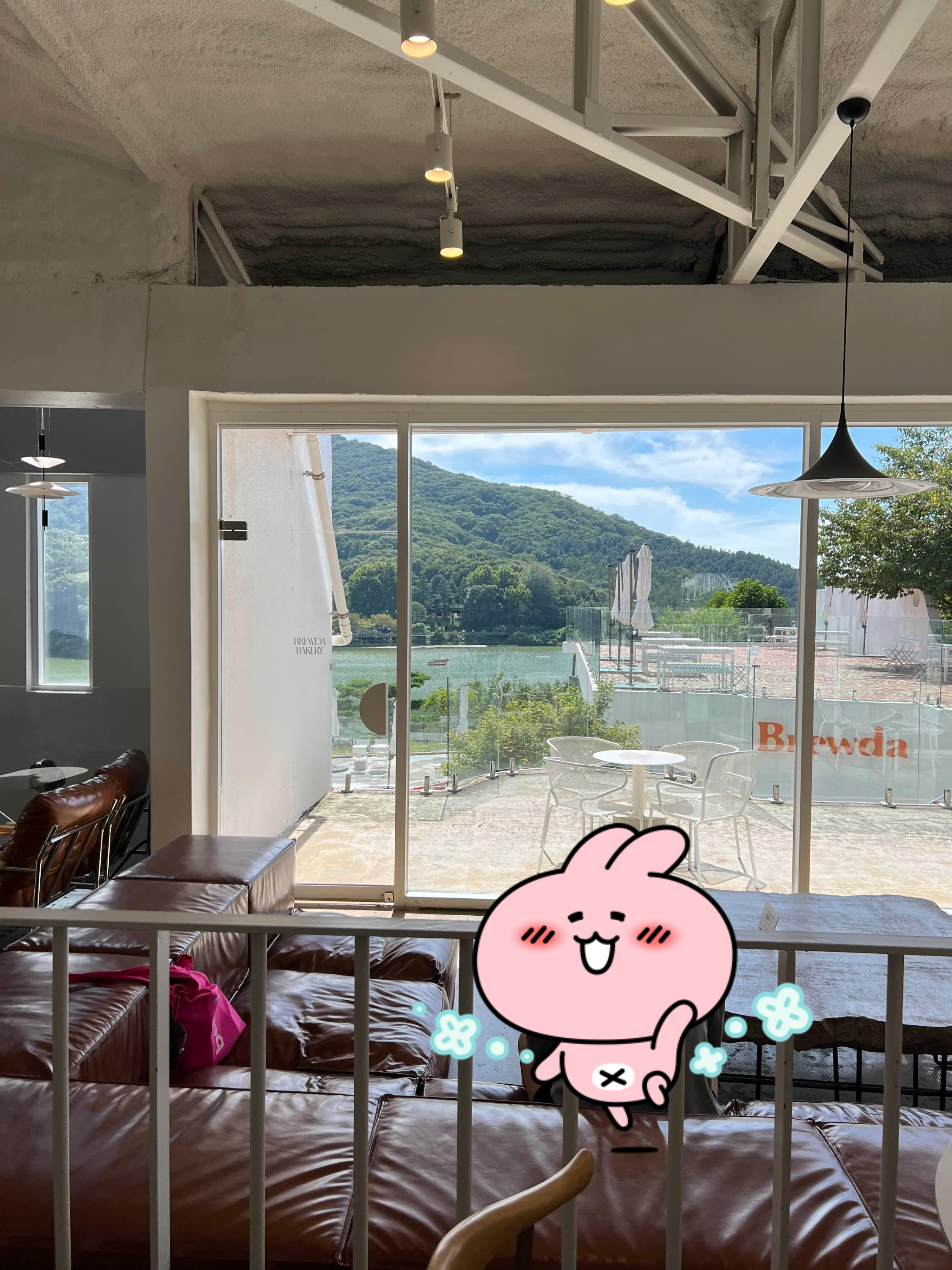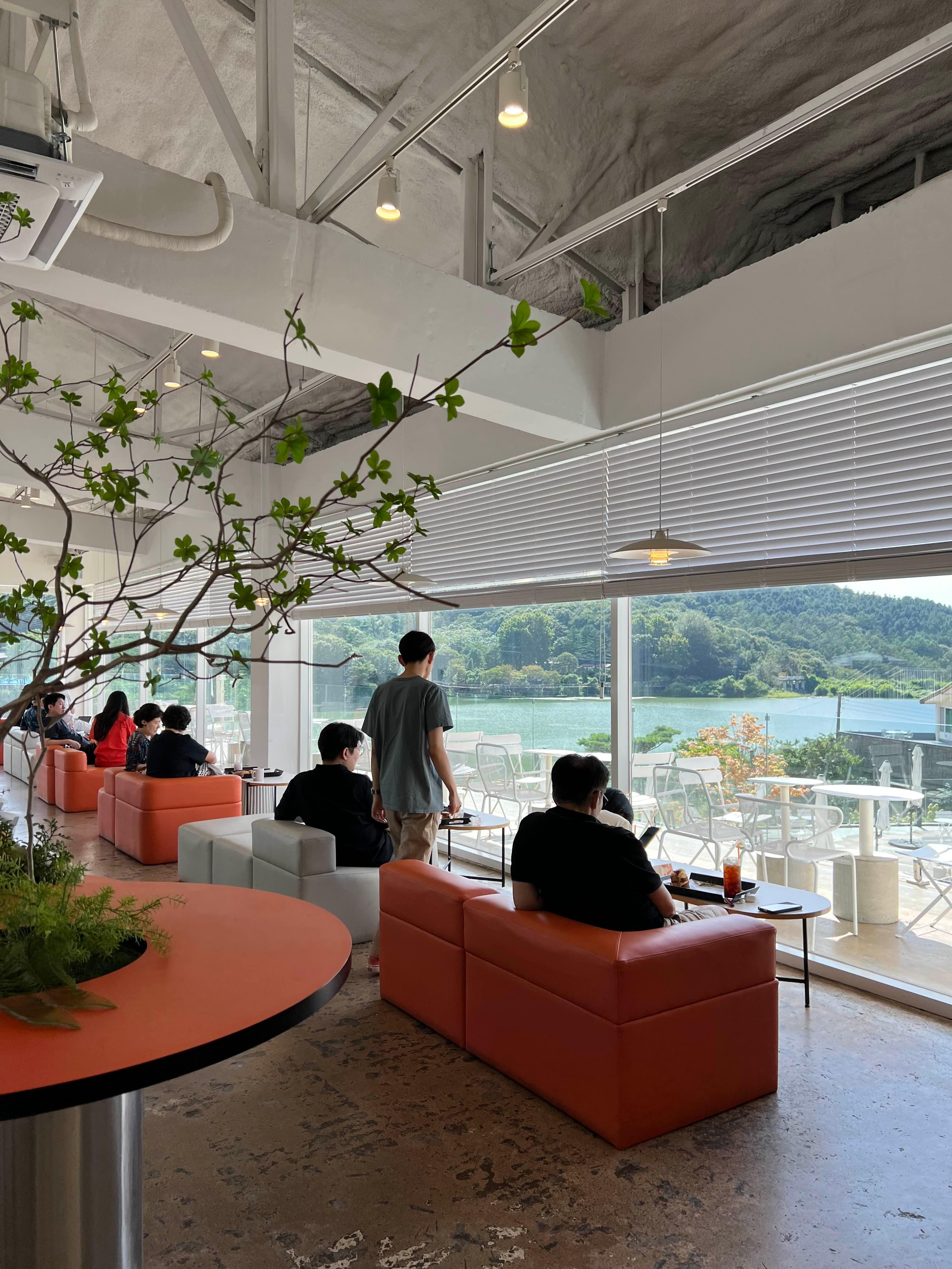 3인 이상이 앉을 수 있는 단체석. 저수지도 잘 보이는 곳이라 여기에 앉았다. 소파가 정말 푹신해서 잠이 쏟아졌다.. 🛋️