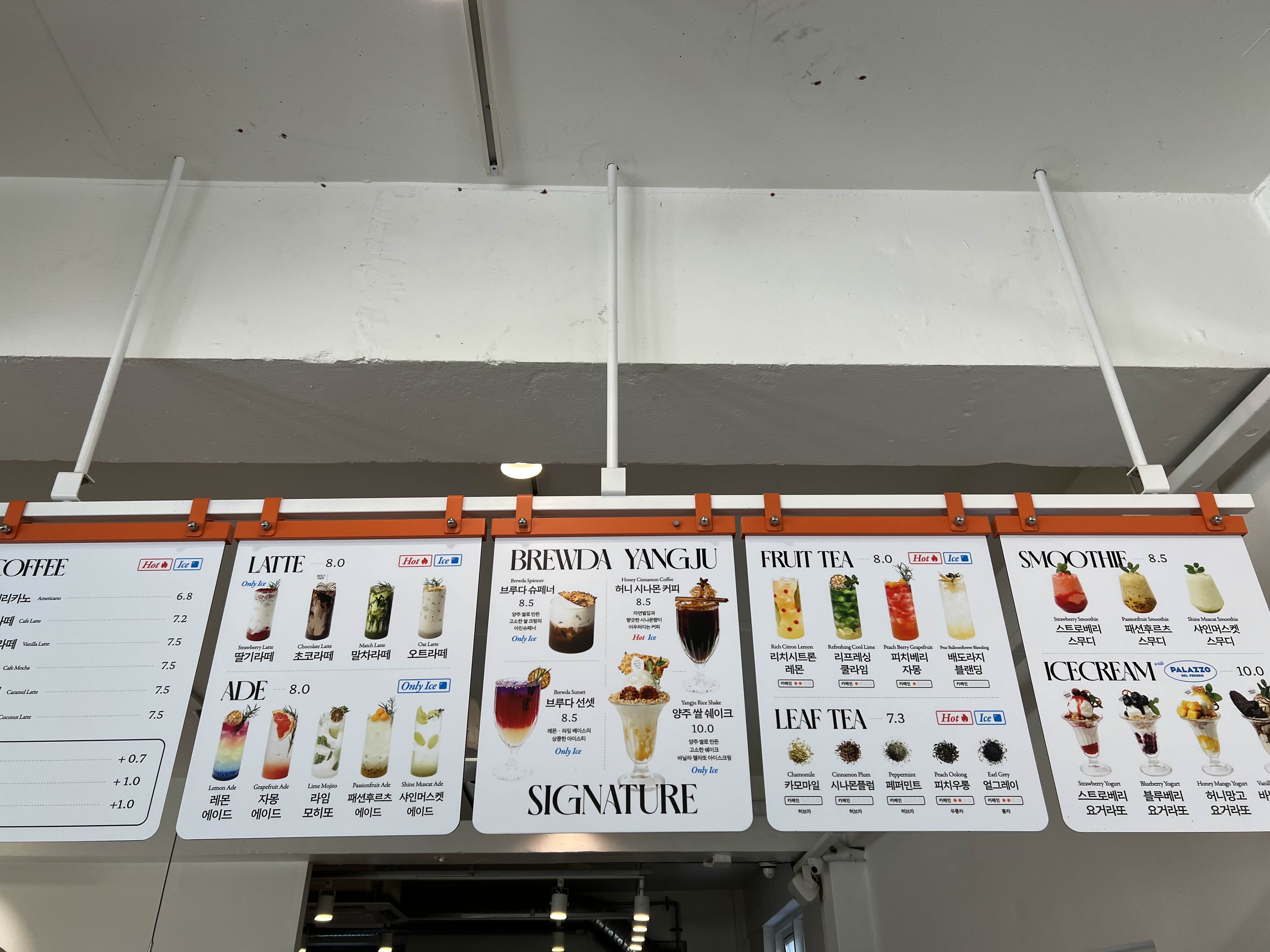 브루다 양주 시그니쳐 메뉴는 '브루다슈페너', '허니시나몬커피', '브루다선셋', '양주쌀쉐이크' 등이 있다. 스무디나 아이스크림 종류도 있어서 커피를 못 먹더라도 선택할 수 있는 음료가 많아 좋았다.