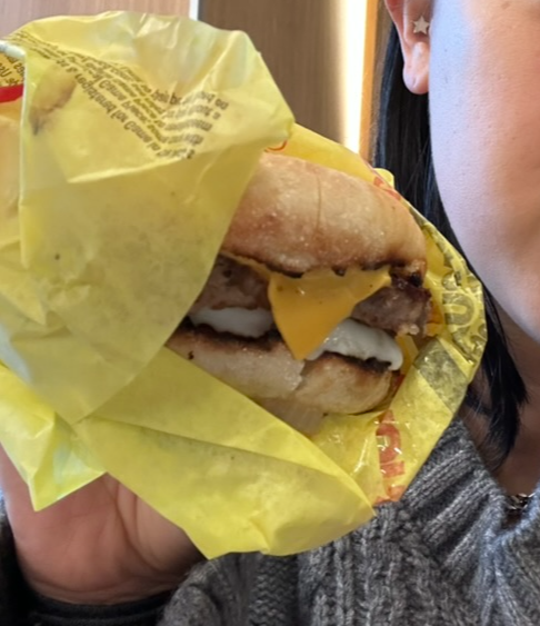놀랐던 건 맥모닝에 들어있는 스테이크가 진.짜 스테이크라 우리나라 웬만한 수제버거집 정도의 퀄리티였다. 치즈와 계란 스테이크의 조합이 진짜 최고.. 머핀도 맛있게 익은거 딱 보이시죠 😋 진짜 강추!