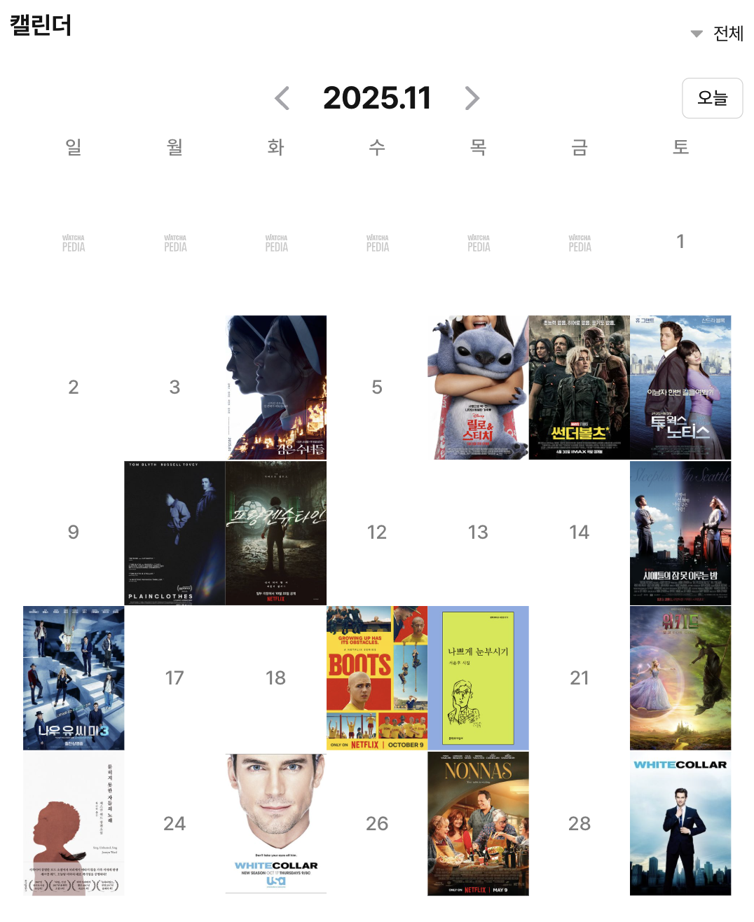 영화 : 검은 수녀들, 릴로 & 스티치, 썬더볼츠*, 투윅스노티스, 사복경찰, 프랑켄슈타인, 시애틀의 잠 못 이루는 밤, 나우 유씨미 3, 위키드, 논나
