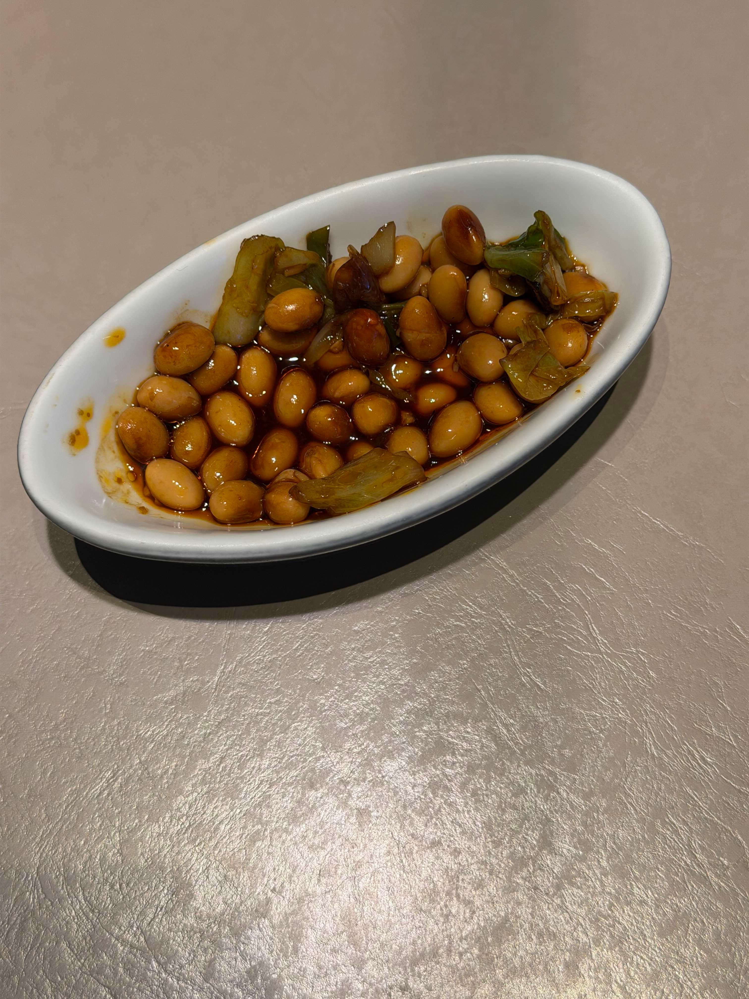 주문을 하고 나니 가장 먼저 밑반찬으로 땅콩이 나왔습니다. 진짜 신기했던게 우리는 대부분 볶은 땅콩을 먹다보니 당연히 바삭한 맛을 기대하는데 콩장처럼 말랑해서 인지부조화가 왔어요 ㅋㅋㅋ 이것도 완전 맥주안주입니다 🫛