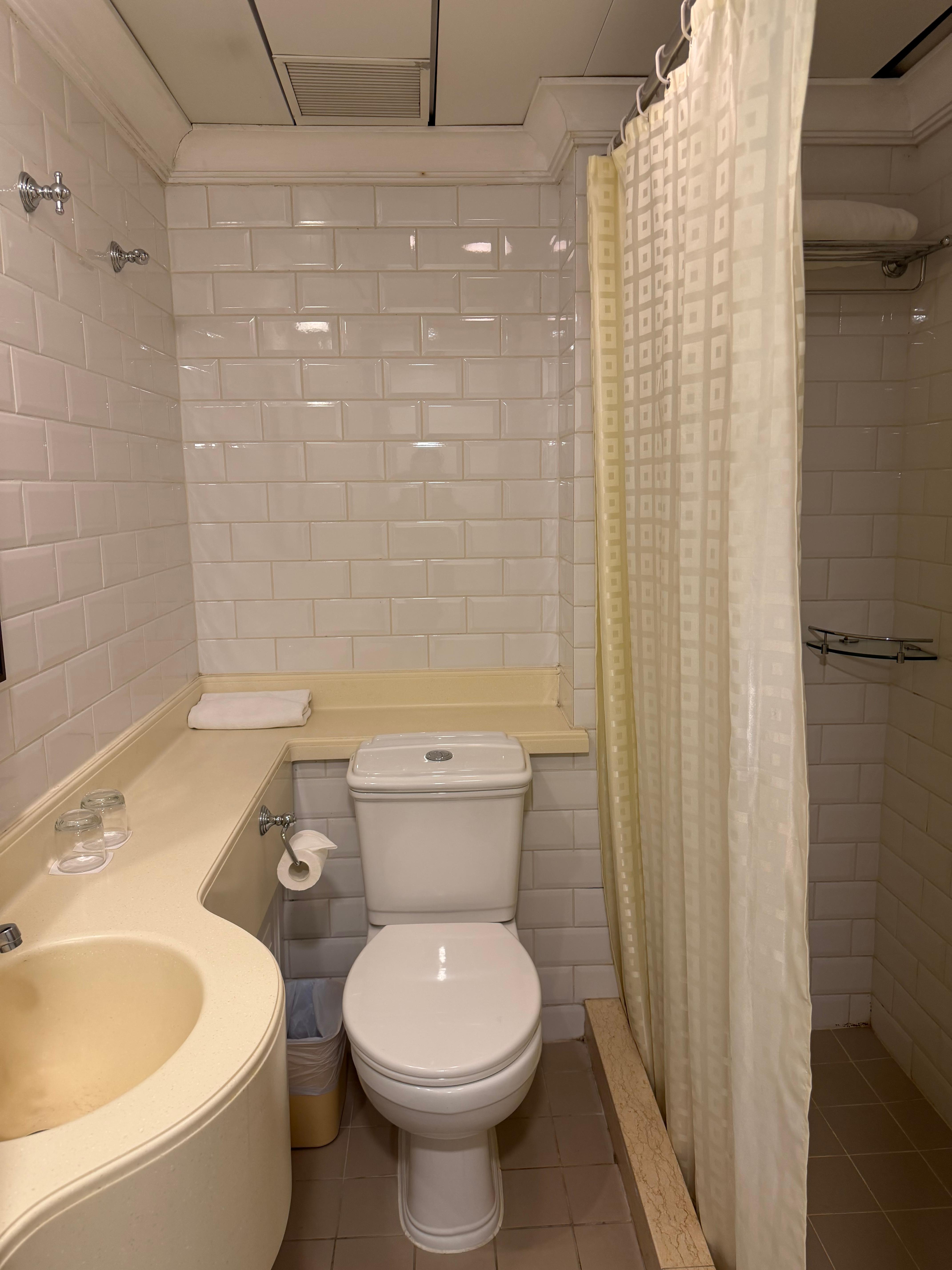화장실은 색감이 뭔가 한국같아서 웃겼다. 사실 홍콩에 작은 숙소들 가면 다 왼쪽 공간만한 곳에 샤워실까지 다 들어가있는데 여기는 세면대 + 변기 / 샤워공간 따로 있어서 꽤 넓은 편! 디스펜서 형태의 샴푸, 컨디셔너, 바디워시가 준비되어 있었다.