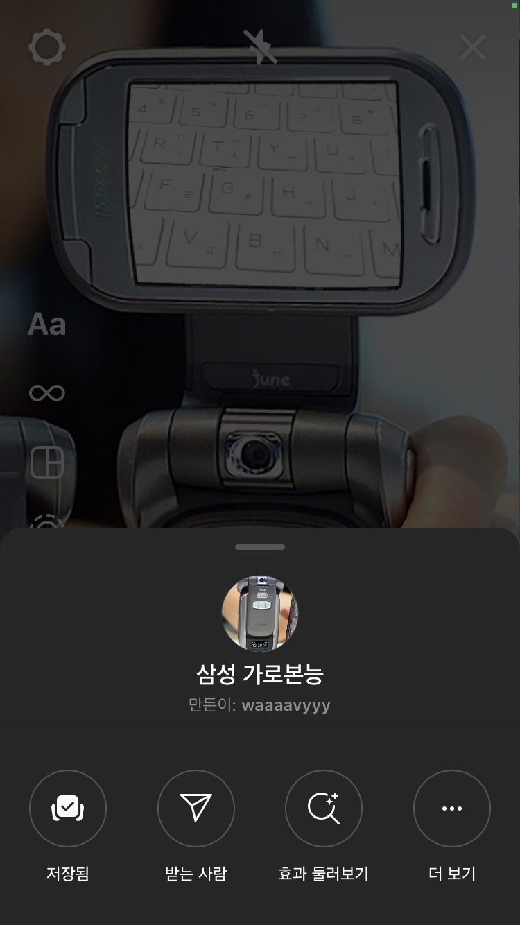 저장하기 / 받는 사람 / 효과 둘러보기 를 통해