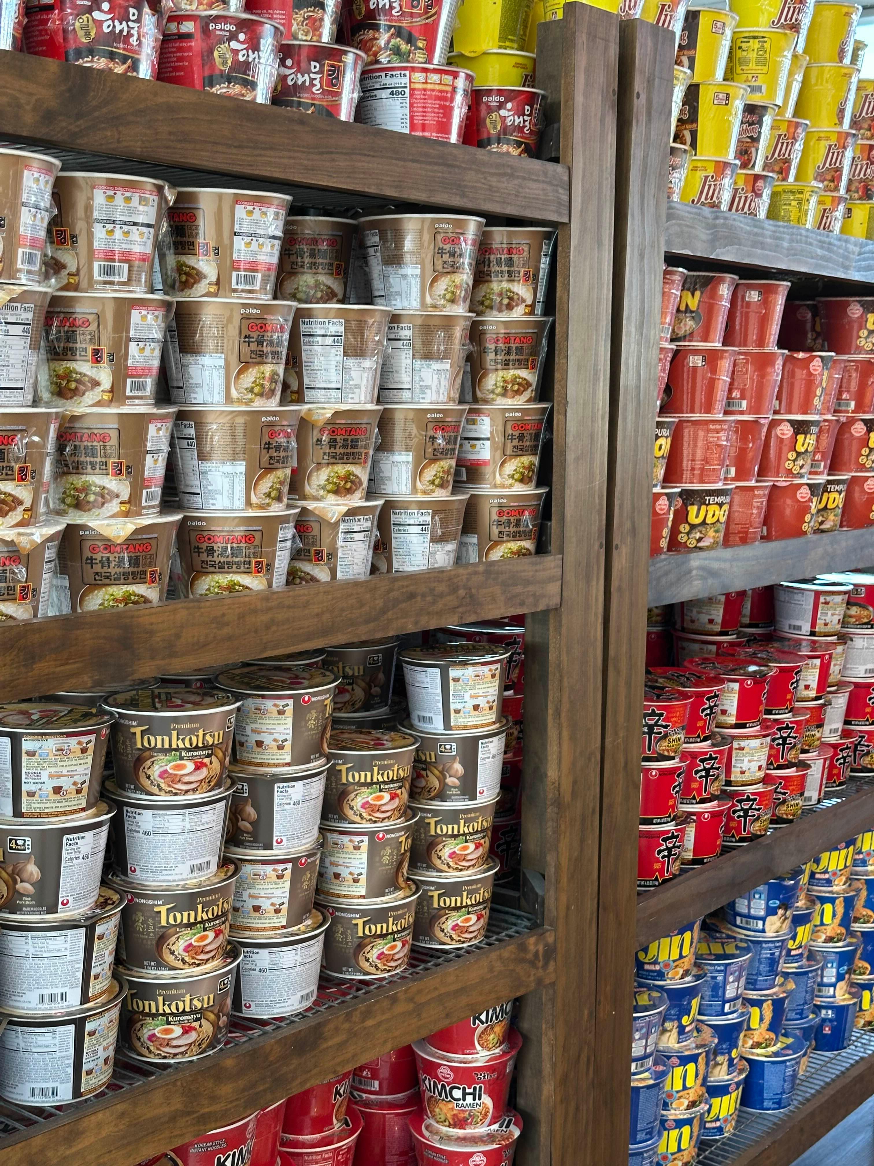 덕분에 쌓여있는 컵라면 더미들 옆에서