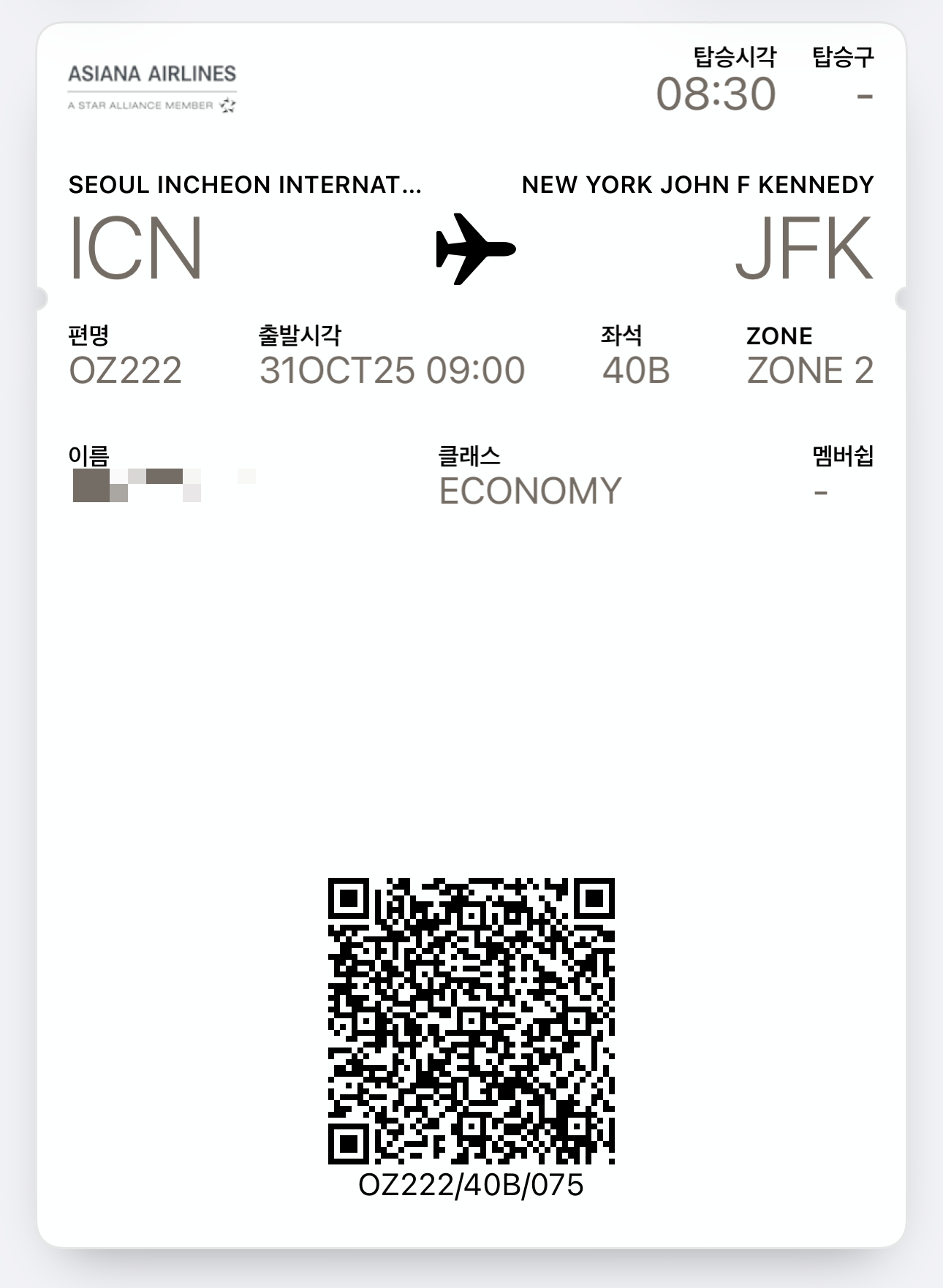 일주일이 지나고 뉴욕에서 한국으로 다시 돌아오는 길 🛬