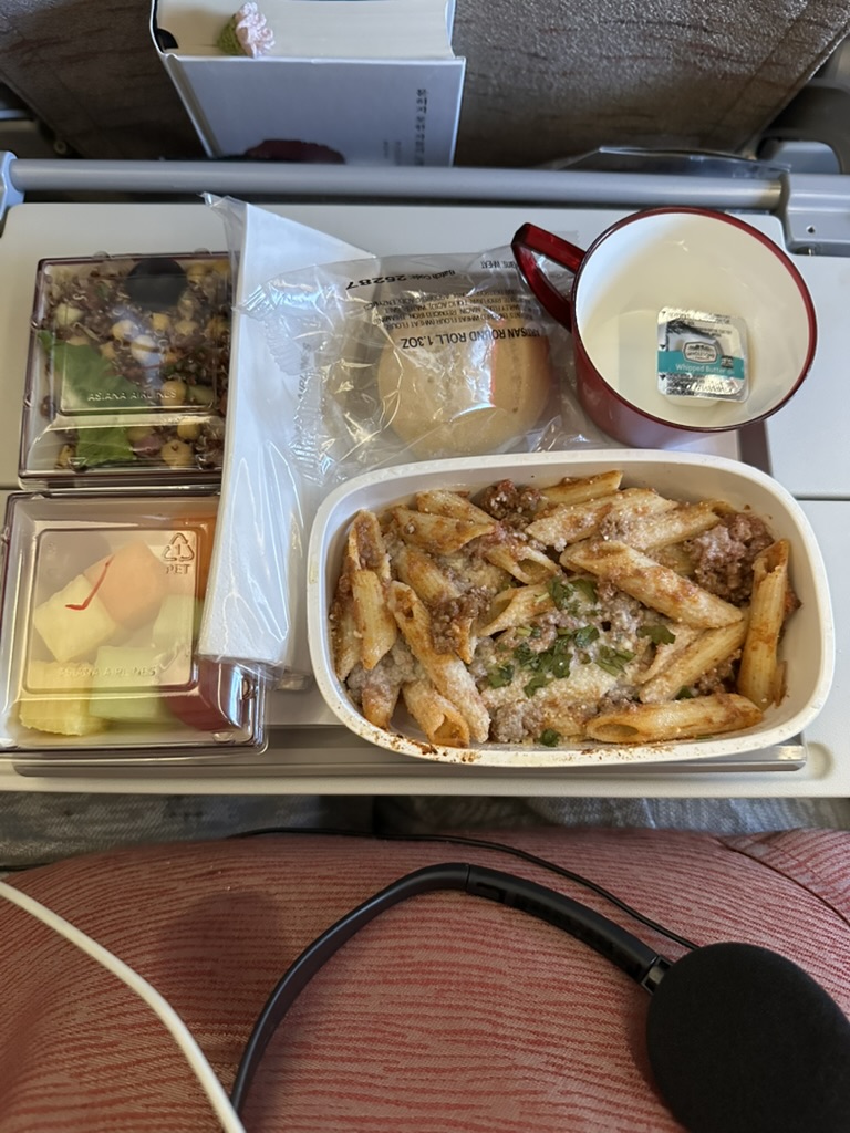 마지막 기내식은 파스타(라구)와 치킨이래서 파스타 먹었어요